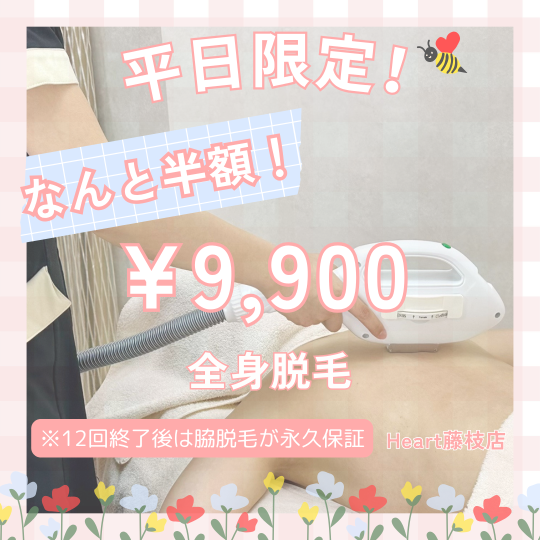 ・シェービングは済ませてからご来店をお願いします。襟足~ヒップまではサロンで行います。 ・定員になり次第締め切りとなります。 ・女性の方、当サロンご利用初めてのお客様が対象です。